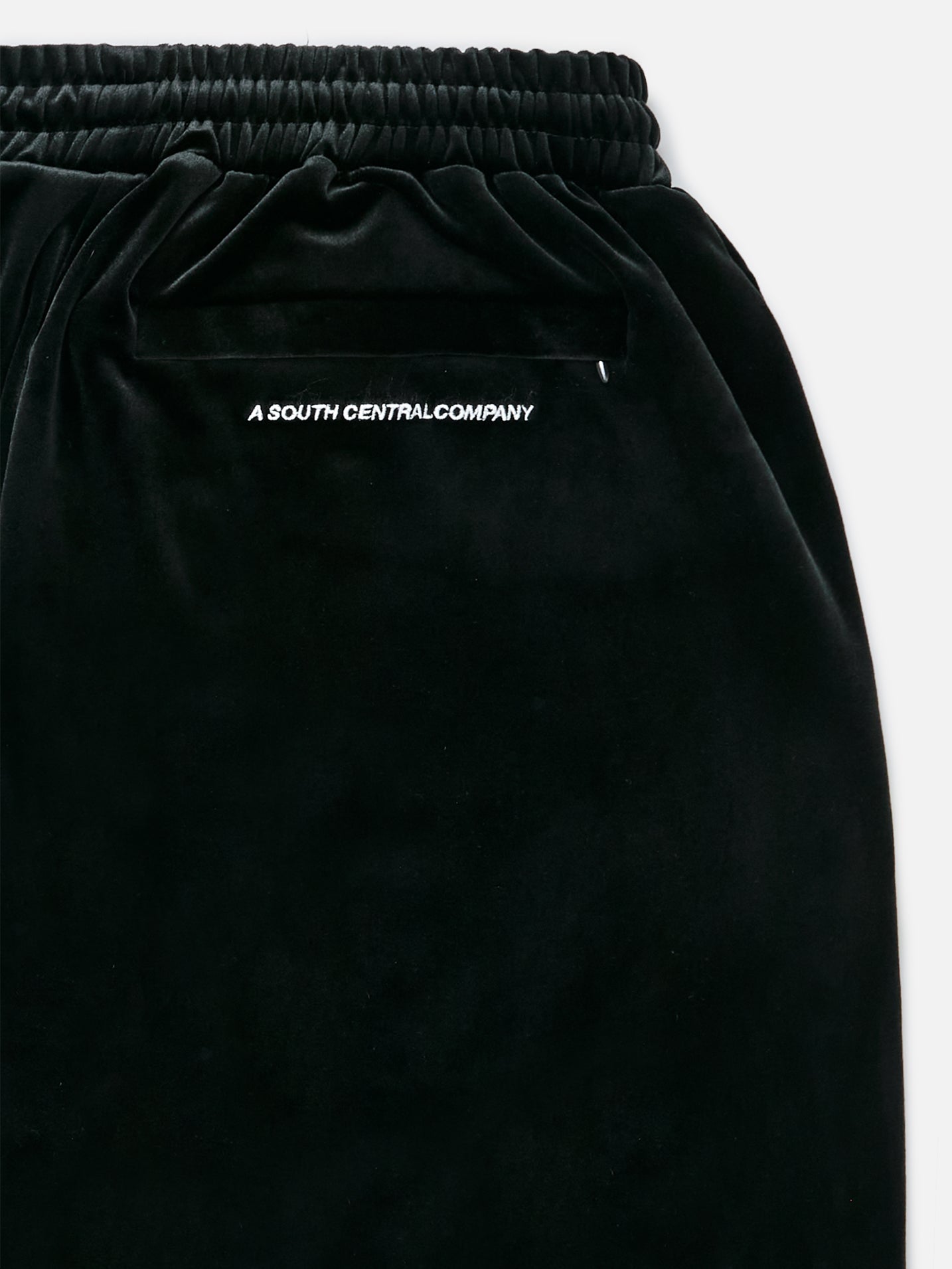 Suitable to run a lap or run a fade.... Features a zipper opening along the leg for a wider or slimmer fit. Lightweight velour with two front zipper pockets. Script logo embroidered on front left leg and A South Central Company Logo on back zipper.